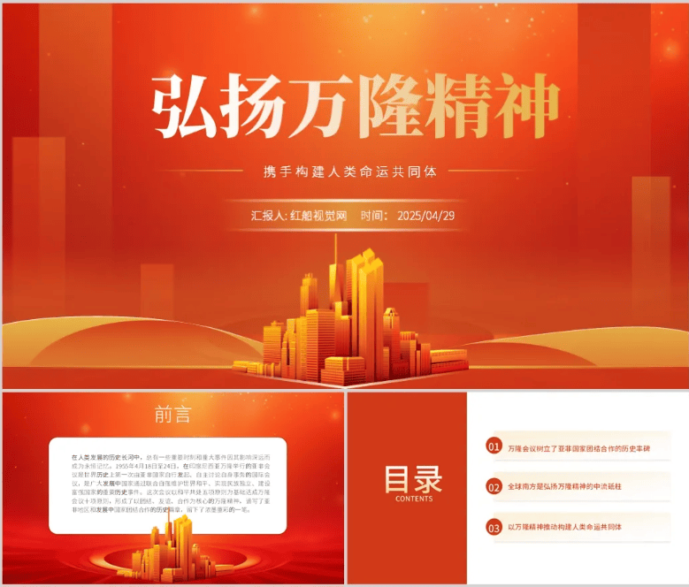 查看更多2025年5月第2季度专题党课PPT:万隆ppt课件,是泛博成长中国度通过结合自强世界和平、实现平易近族、扶植强盛国度的主要汗青事务。将万隆这一成长中国度的“金字招牌”擦拭得更亮。党课ppt页数:20页,能够说,构成了以连合、友情、合做为焦点的万隆,